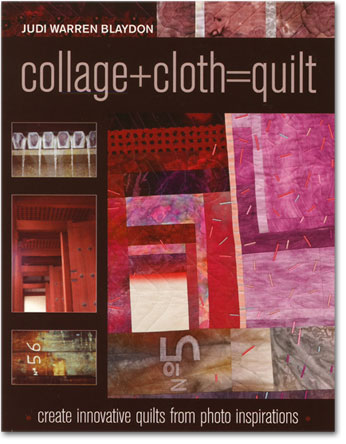 | Autographed copies can be ordered from Judi reviews of collage+cloth=quilt• Barbara Brackman's Material Culture "Judi's process, solidly grounded in classic design principles yet fluidly accommodating of different aesthetics, fosters extraordinary creativity. She teaches you how to design by combining elements and images from your own photographs. Thus, the quilt you make is a purely individual expression of your own composition as well as your fabric and finishing choices." "Get ready to be inspired to make your own collage quilt. This book features how to make creative quilts from photographs. Have you recently taken a trip overseas? Use the photos from your trip to create a blueprint, then using your stash, cut out the coordinating fabrics for your very own collage quilt. Judi shows you how to zoom in and crop your photos to create interesting details and textures. Perfect for adventurous beginner quilters or for advanced quilters, your imagination is your limit with this book." Judi is also the author of "Fabric Postcards: Landmarks and Landscapes/Monuments and Meadows" (AQS 1994), and has written articles for Quilts Japan Magazine, Patchwork Quilt Tsushin and American Quilter. | ||